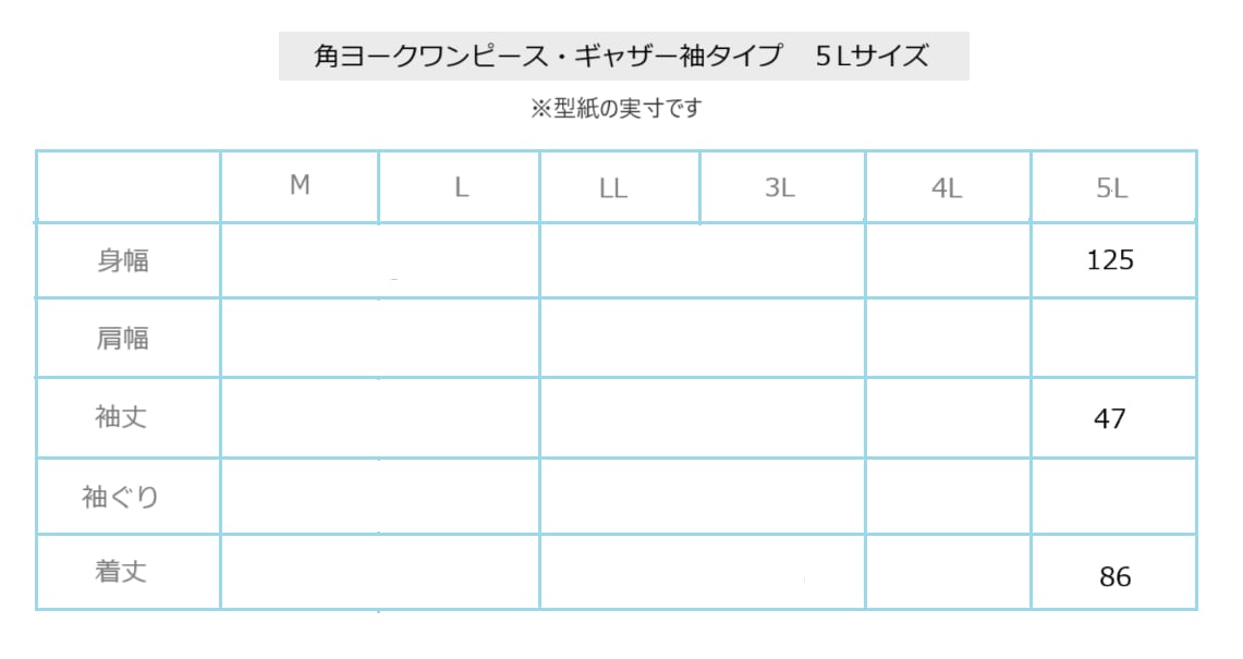 【型紙】角ヨークチュニックワンピース・ギャザー袖タイプ5Lサイズ