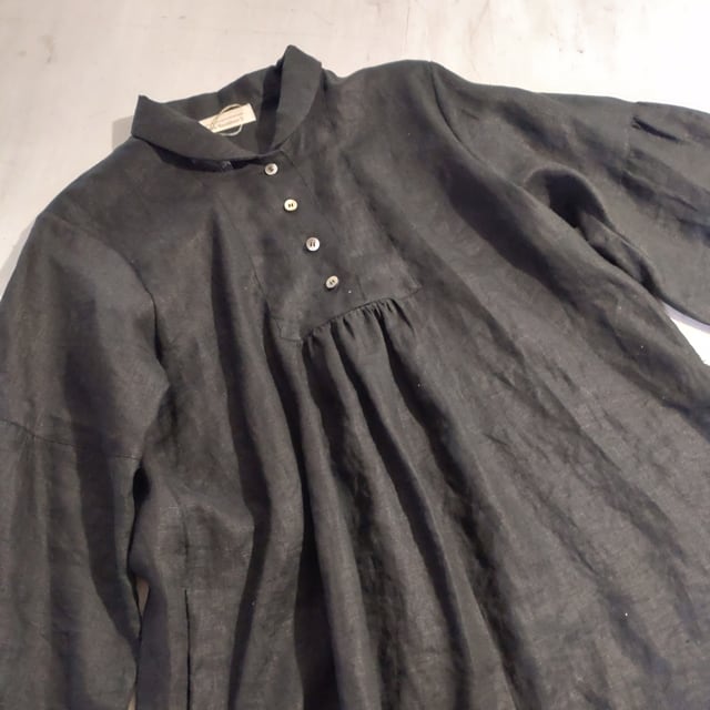 素敵なヨークデザインが印象的なチュニックワンピース。腰高な丸衿も可愛いです